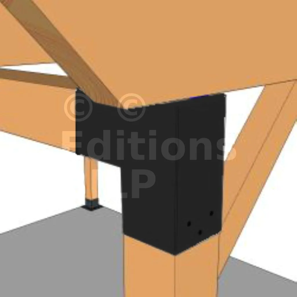 Il est utilisé dans un angle extérieur. Ce connecteur va permettre de raccorder une grosse poutre 120x120mm perpendiculairement à une autre poutre ou à un poteau vertical 120x120mm.