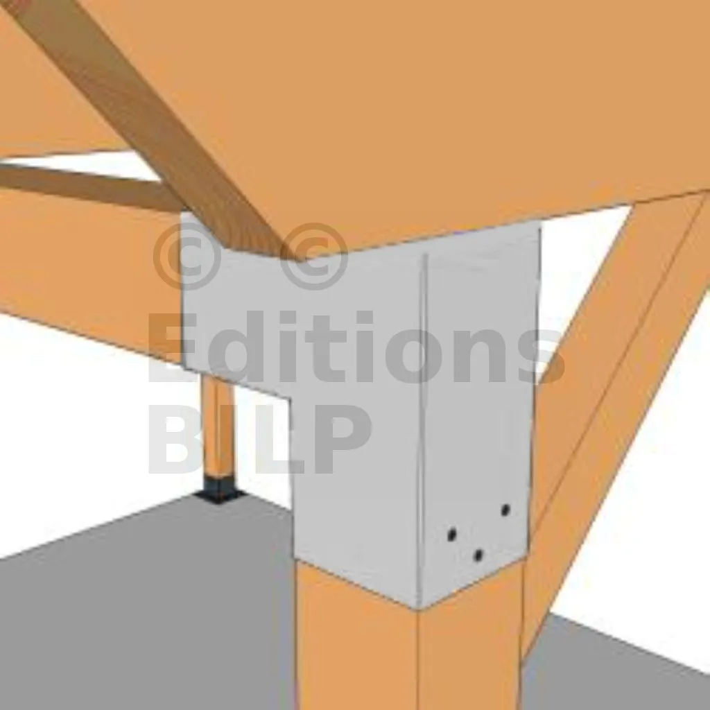 Il est utilisé dans un angle extérieur. Ce connecteur va permettre de raccorder une grosse poutre 120x120mm perpendiculairement à une autre poutre ou à un poteau vertical 120x120mm.