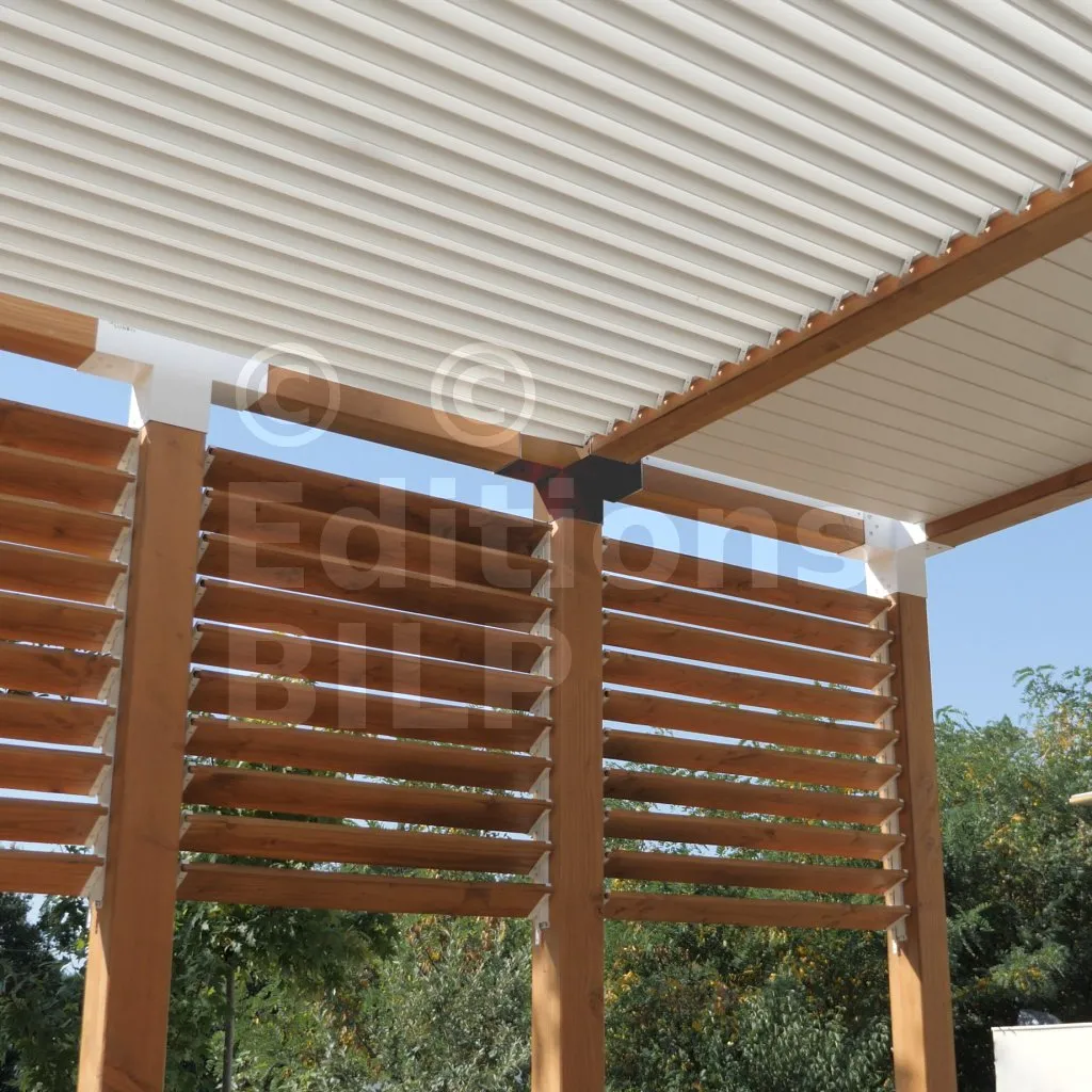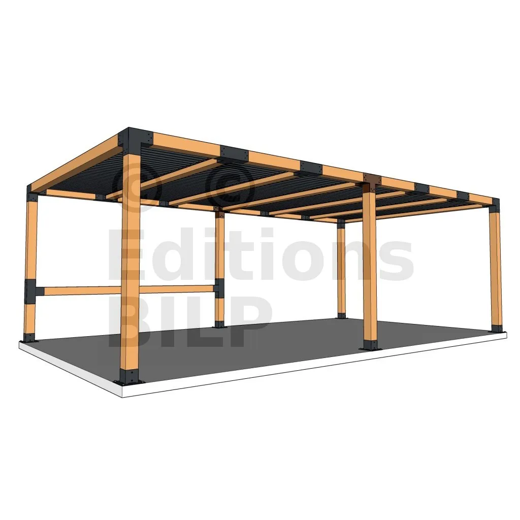 Il permet de raccorder une poutre de 120x120mm perpendiculairement à un chevron de 120x120mm, le tout étant supporté par un poteau vertical de 120x120mm.