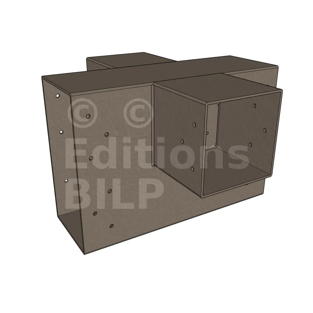 Il permet de raccorder deux poutres 120x120mm perpendiculairement à une grosse poutre 240x120mm, SANS être soutenu par un poteau vertical.