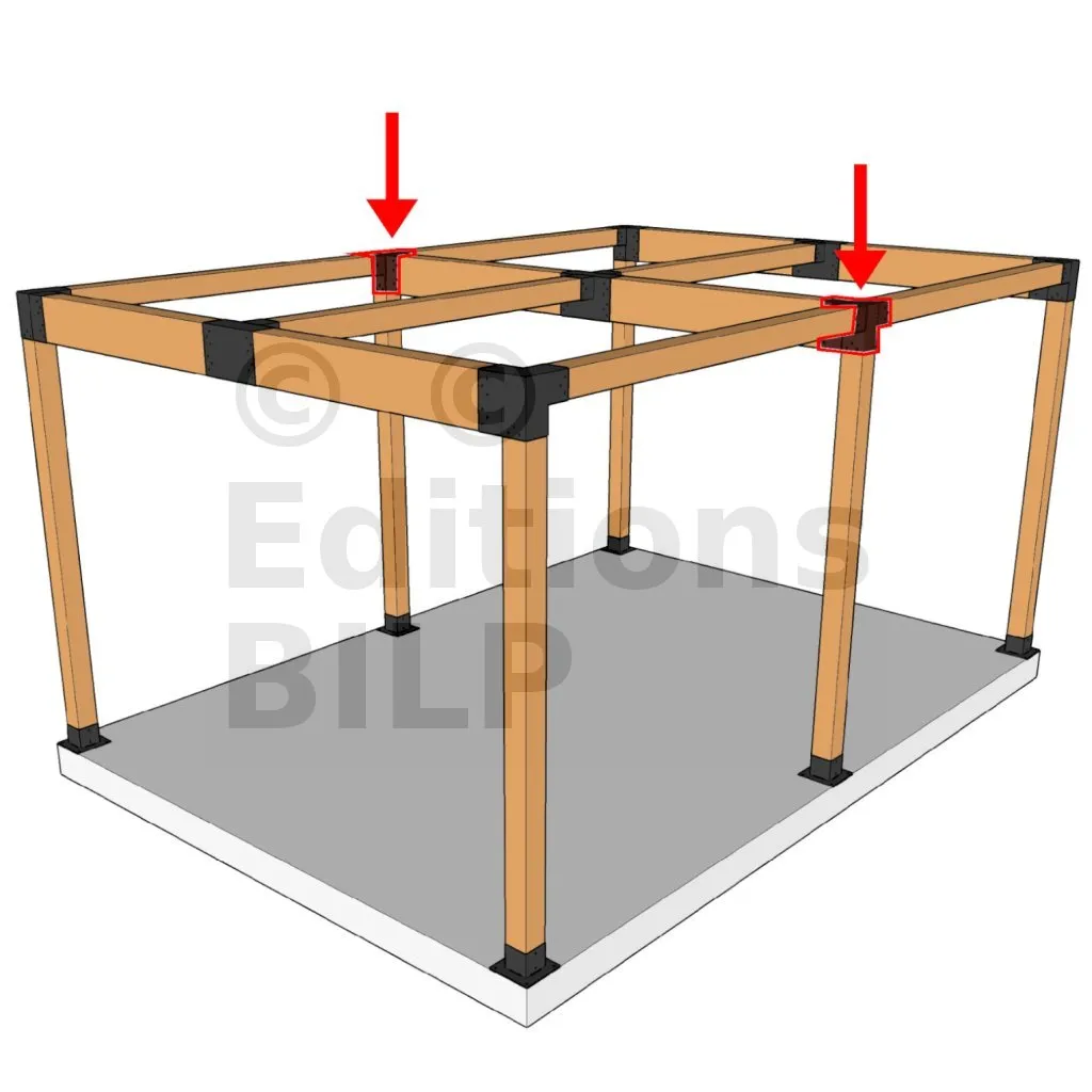 Il permet de raccorder deux poutres 120x120mm perpendiculairement à une grosse poutre 240x120mm, SANS être soutenu par un poteau vertical.