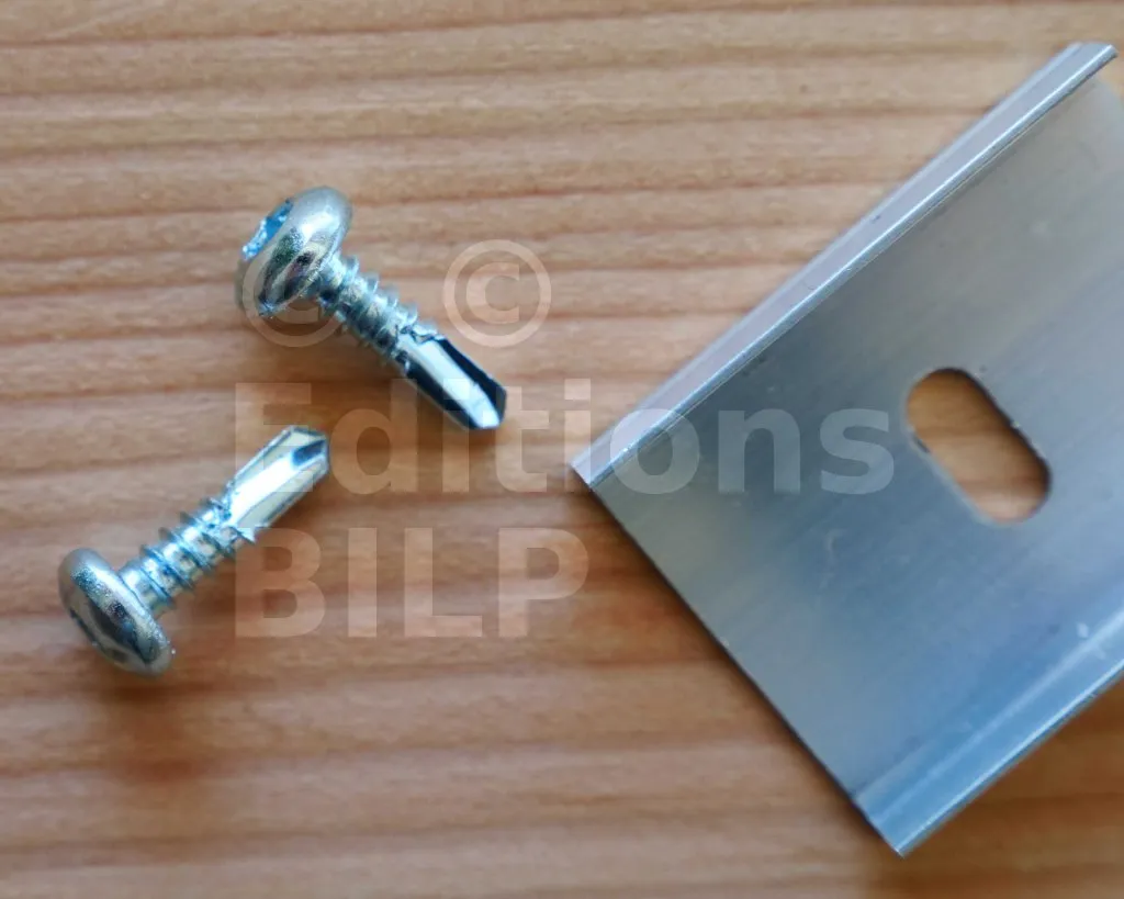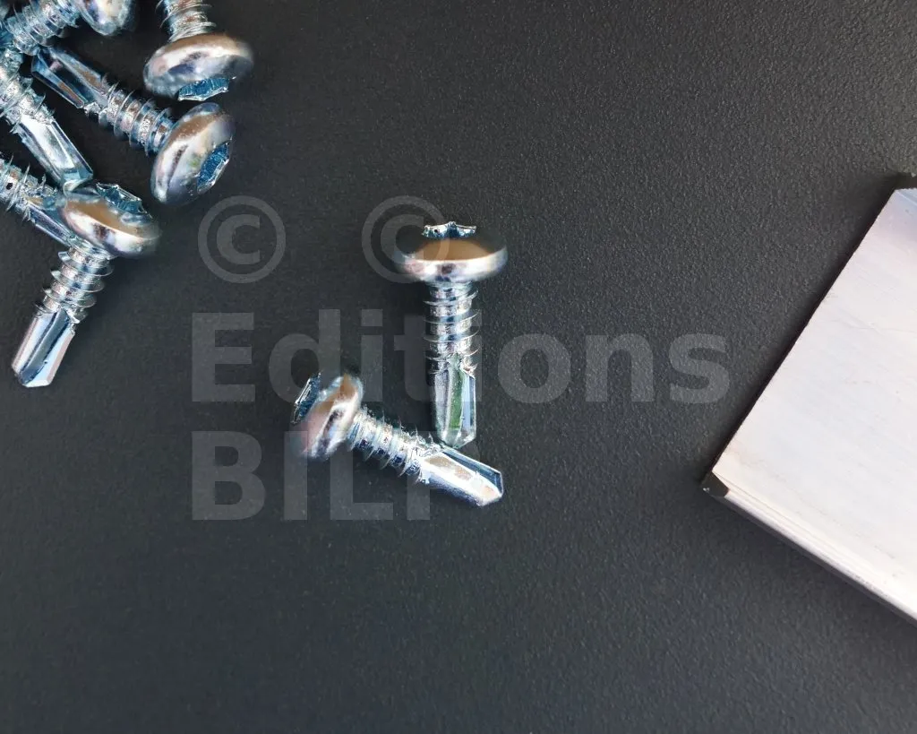 Les mécanismes du système SUNDIY sont solidement fixés à la structure (que ce soit du bois, de l’aluminium, du béton, etc.) à l’aide des clips* de fixation qui doivent être vissés au préalable. Les vis proposées ici sont spécialement conçues pour garantir une fixation efficace dans l’acier.