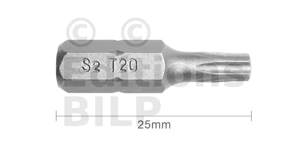 Embout T20 25mm (Qualité Professionnelle, Acier S2) - lot de 20 embouts - Réf. EmboutT20_20