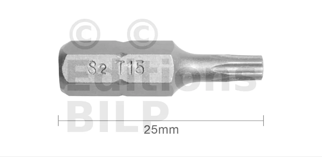 Embout T15 25mm (Qualité Professionnelle, Acier S2) - lot de 1 embout - Réf. EmboutT15_1