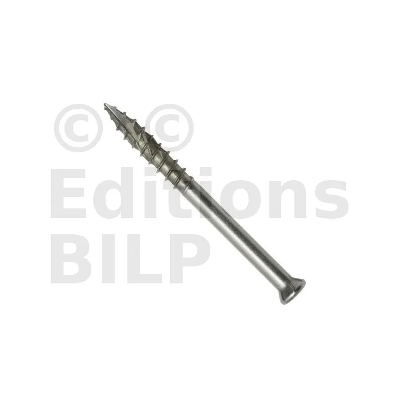 La vis en Inox A4 offre une sécurité optimale grâce à sa résistance à la corrosion, essentiellement pour les bois durs tropicaux (Bangkirai, Massanduba, Ipé, Garapa, Cèdre rouge, Bilinga, Cambara, Jatoba, Red Balau).