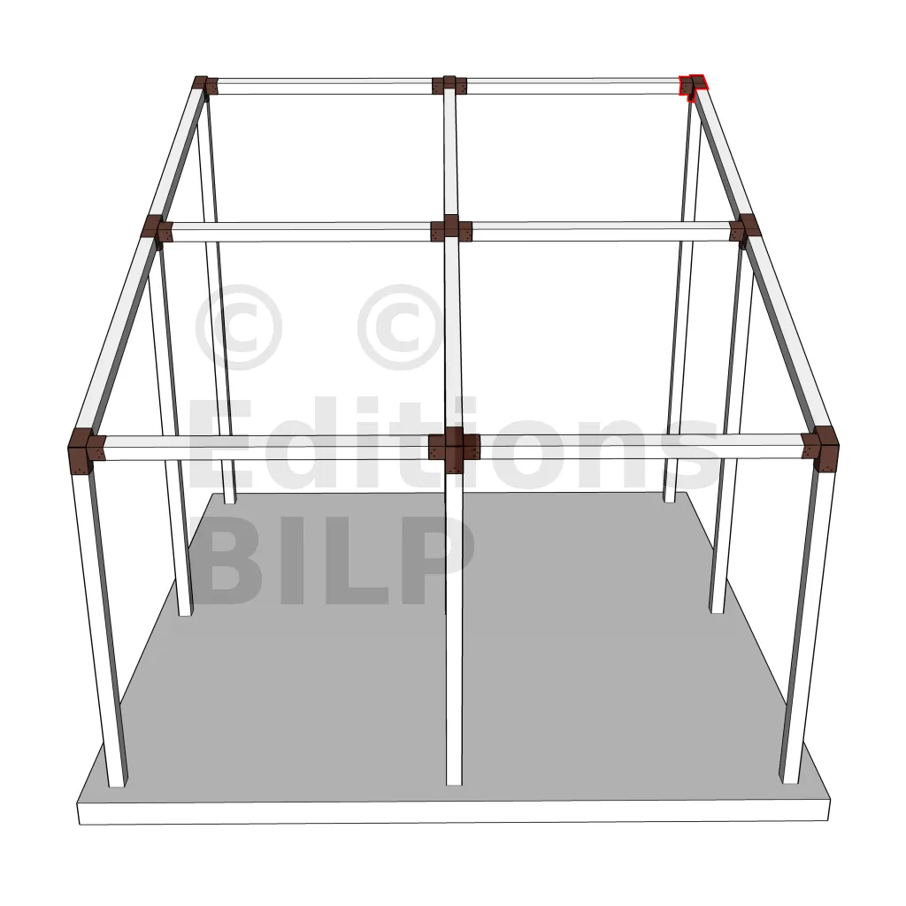 Il est utilisé dans un angle extérieur. Ce connecteur va permettre de raccorder une poutre 120x120mm à une poutre 120x120mm avec une pente de 20°, le tout étant supporté par un poteau vertical 120x120mm.