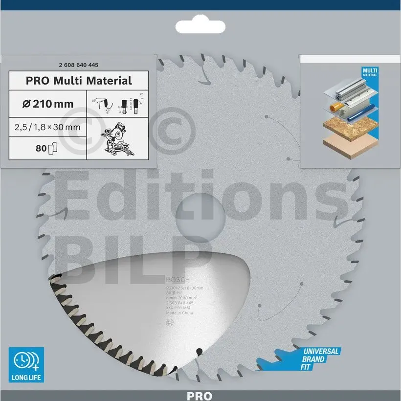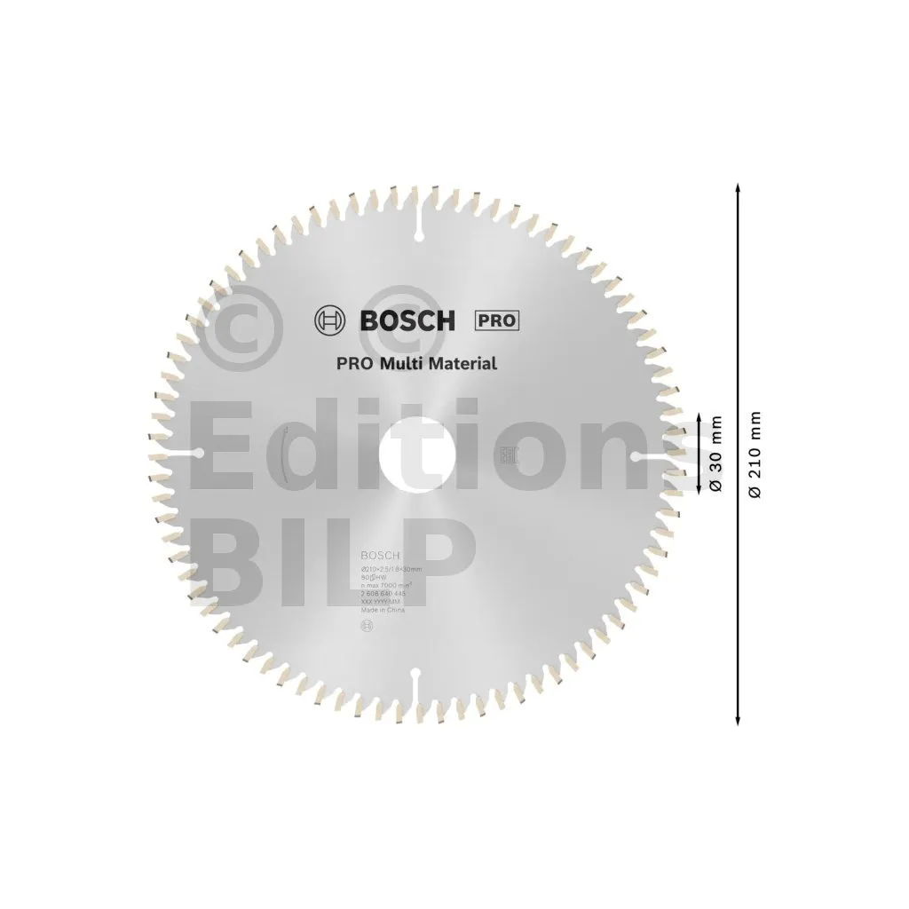 Lame de scie circulaire PRO 210 x 30 x 2.5 mm - 80 dents - Multi matériaux - Réf. 2608640445