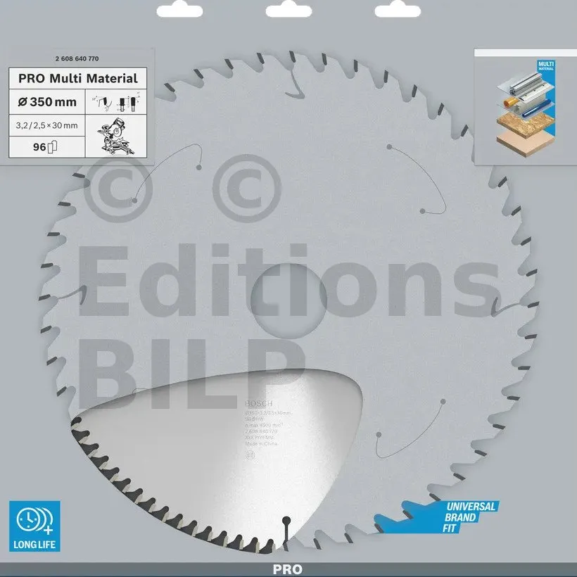 Lame de scie circulaire PRO 350 x 30 x 3.2 mm - 96 dents - Multi matériaux - Réf. 2608640770