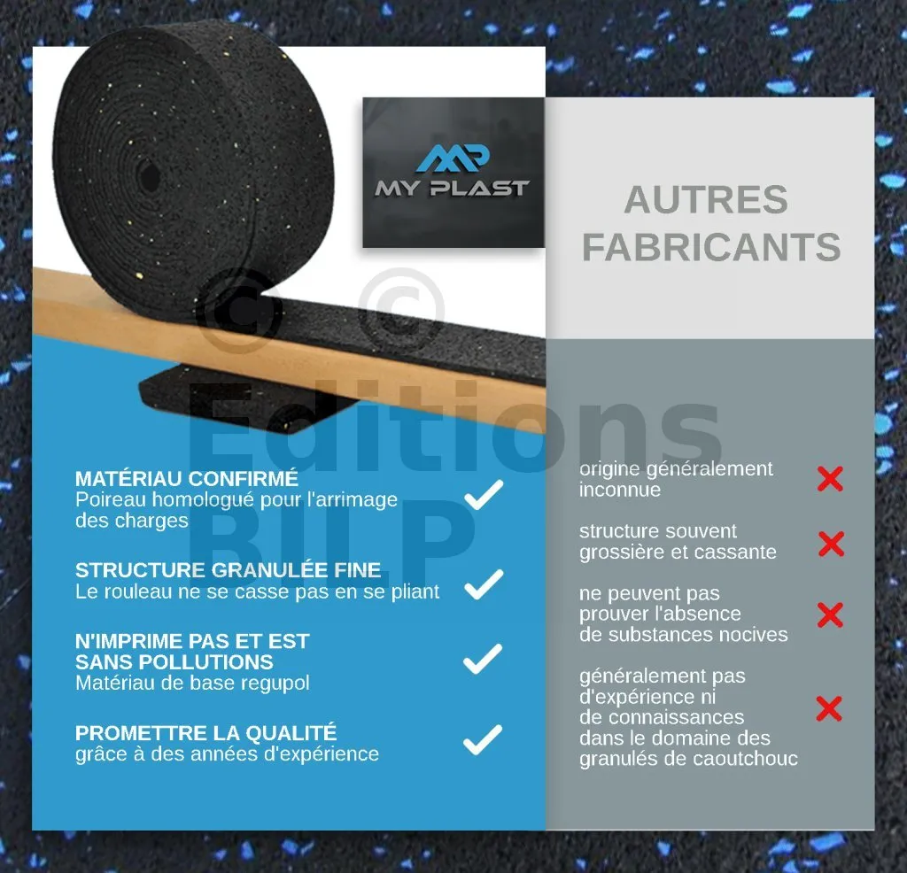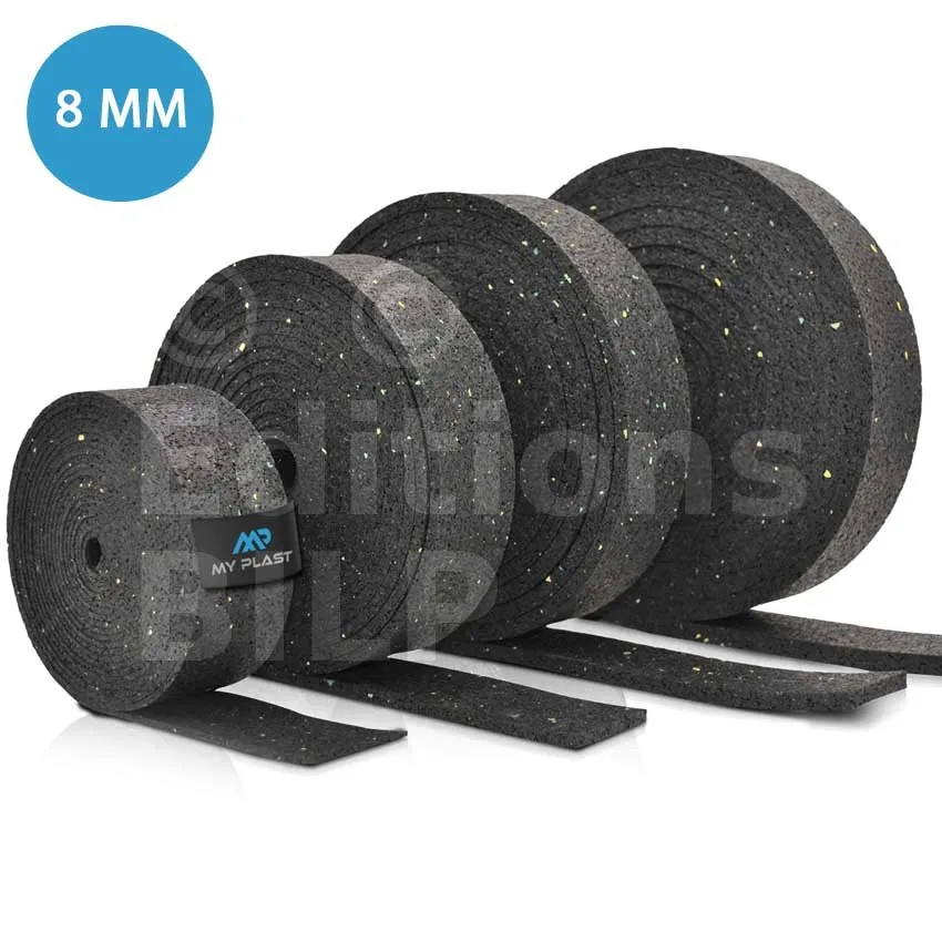 Rouleau de protection SOUS lambourde en granulé de caoutchouc – 10 m × 50 mm × 8 mm - Réf. MY-P-5000x80x8