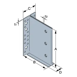 | Largeur | Hauteur | Largeur poteau | Hauteur (A) | Profondeur (B) | largeur (C) | largeur (D) | Epaisseur (t1) | Epaisseur (t2) | Ø13 | Ø5 | Ø13 | ||