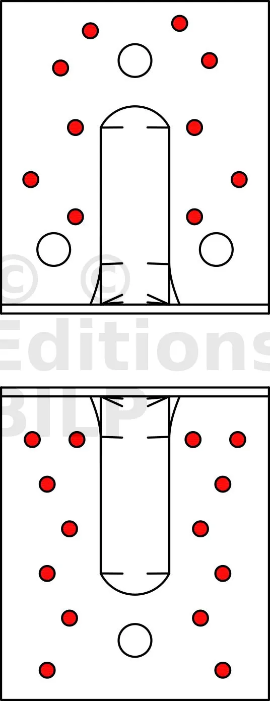 - Fixation BOIS/BOIS - clouage totalAile A : 4 ; Aile B : 6 ; type : Pointes annelées CNA Ø4.0x35 ou Ø4.0x40 ou Ø4.0x50 ou Ø4.0x60 mm, Vis CSA Ø5.0x35 ou CSA Ø5.0x40