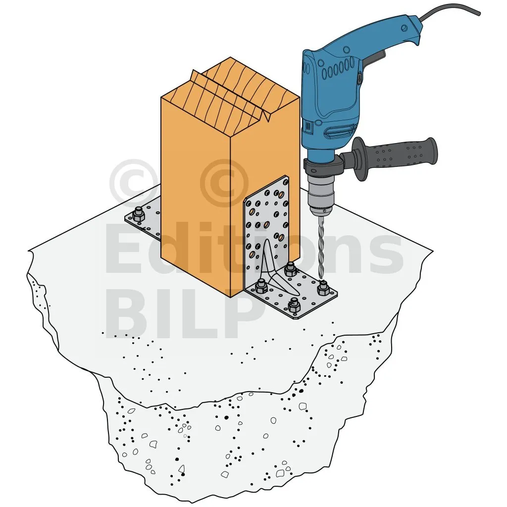 4. Si le support est en béton, fixer l’équerre en respectant les préconisations de pose de l’ancrage choisi.