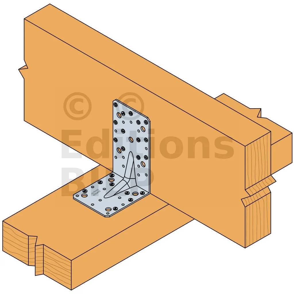 - Fixation BOIS/support rigide - clouage total2 équerres Aile A : 24 CNA Ø4.0x35 ou Ø4.0x50 mm ou Aile B : 4Ø10 (boulon ou tirefond)