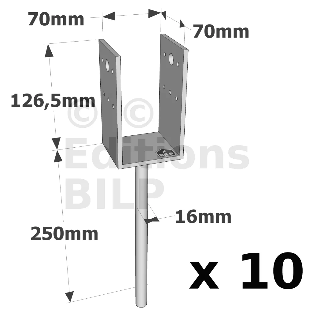 Pieds de poteau en U à sceller - Réf. PPD70/70G_10