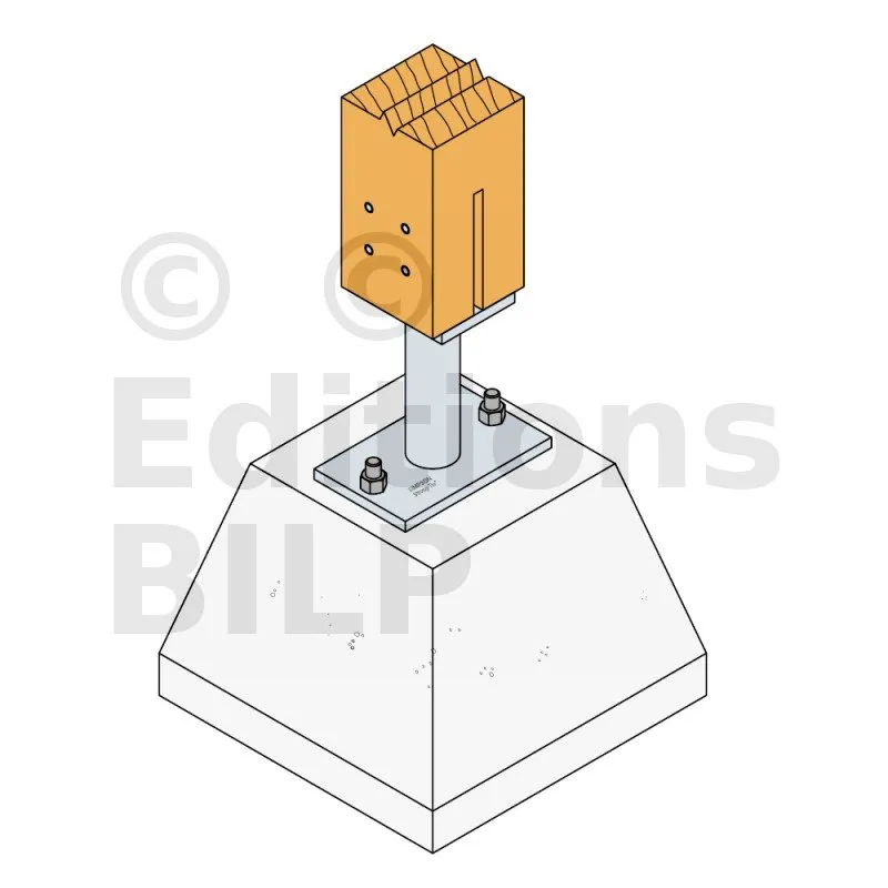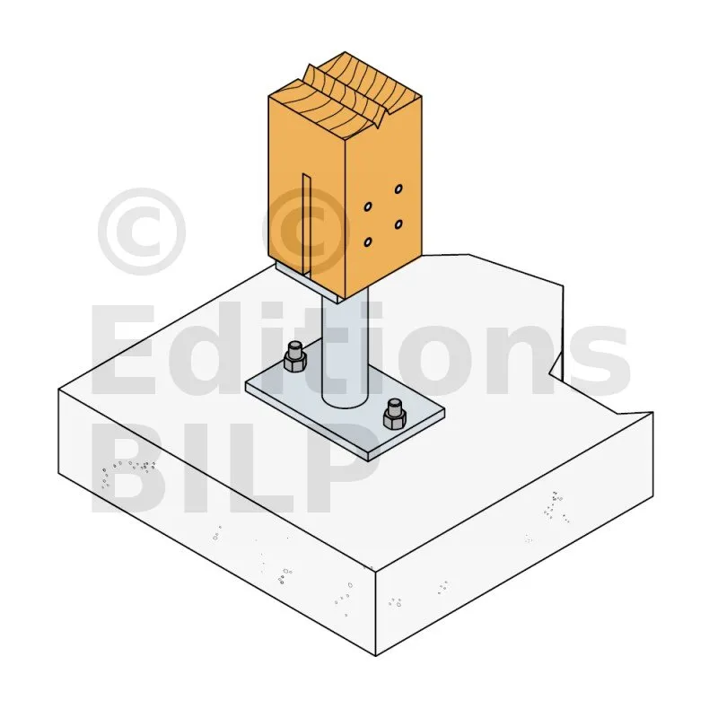 - Connexion bois sur support rigideSur poteau : 4Ø8 (broches STD) ; sur béton : 2Ø12 (goujons WA ; tige filetée)