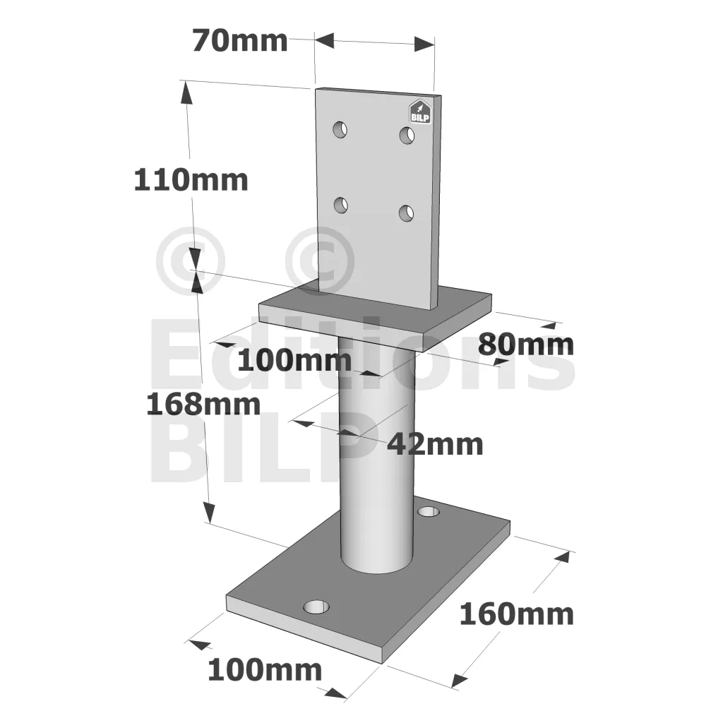 - La longueur des broches correspond à la section du poteau.