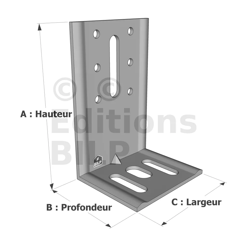 - 1 trou oblong sur l’aile d’appui (côté chevron).