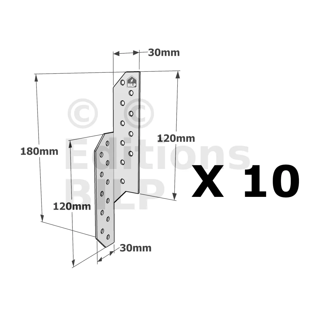 Patte de solivage GAUCHE - 30x180x1.5mm - Réf. PSG180/30/1.5_10