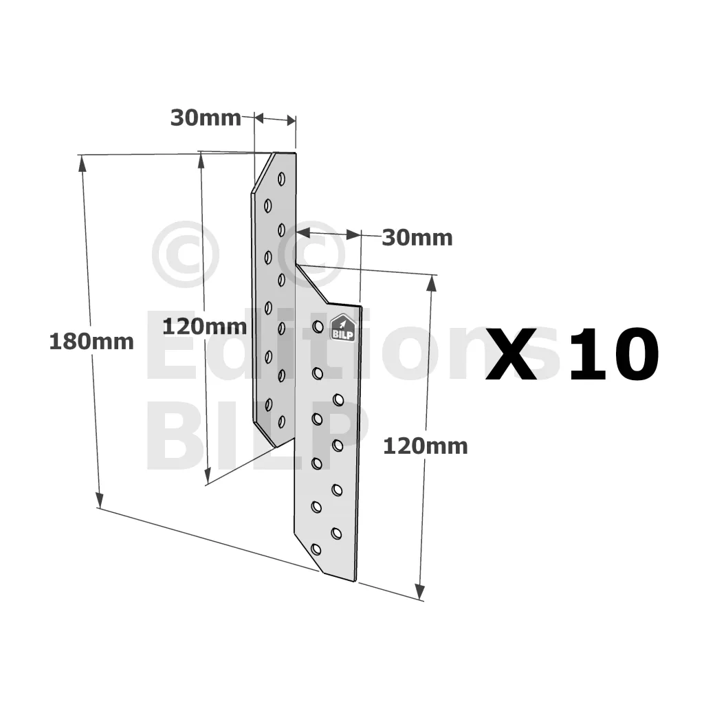 Patte de solivage DROITE - 30x180x1.5mm - Réf. PSD180/30/1.5_10