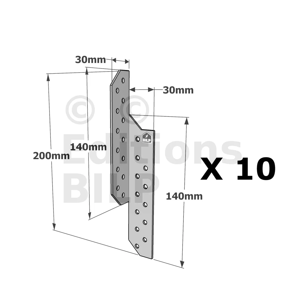 Patte de solivage DROITE - 30x200x1.5mm - Réf. PSD200/30/1.5_10