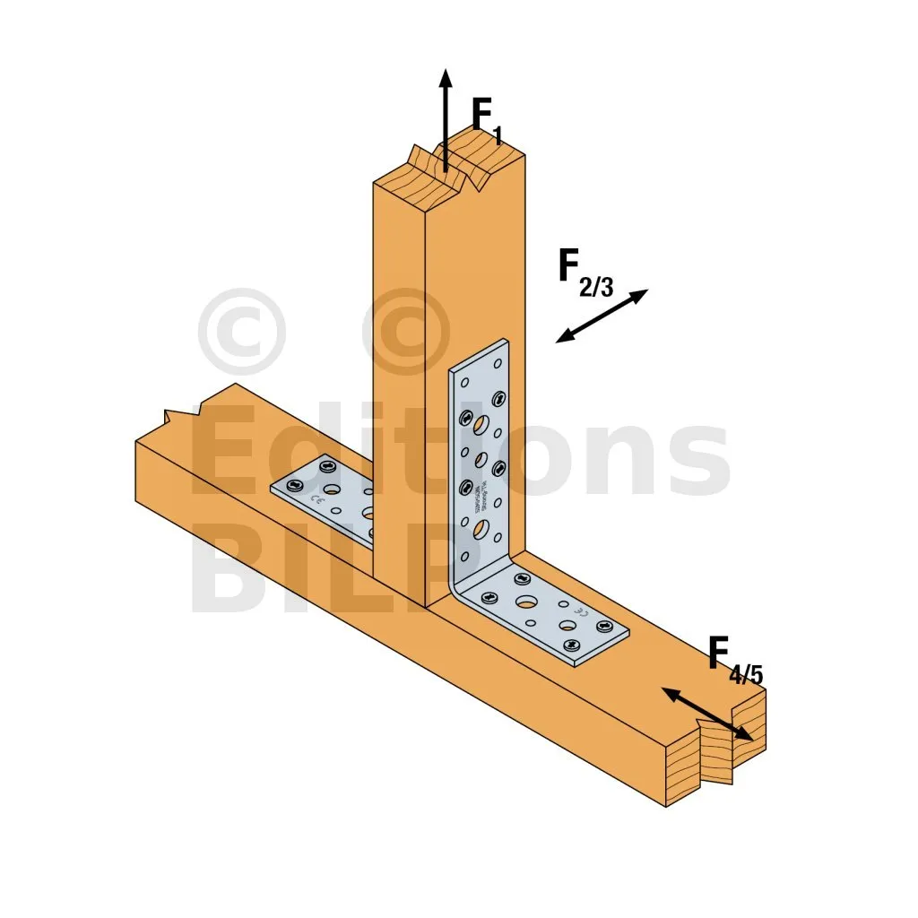 - Fixation bois/support rigide - type poutre/support rigideAile B : 7 - type : CNA Ø4.0x35 ou Ø4.0x50 mm ; Aile C : 1 - type : WA M10-78/5 - Assemblage avec 2 équerres