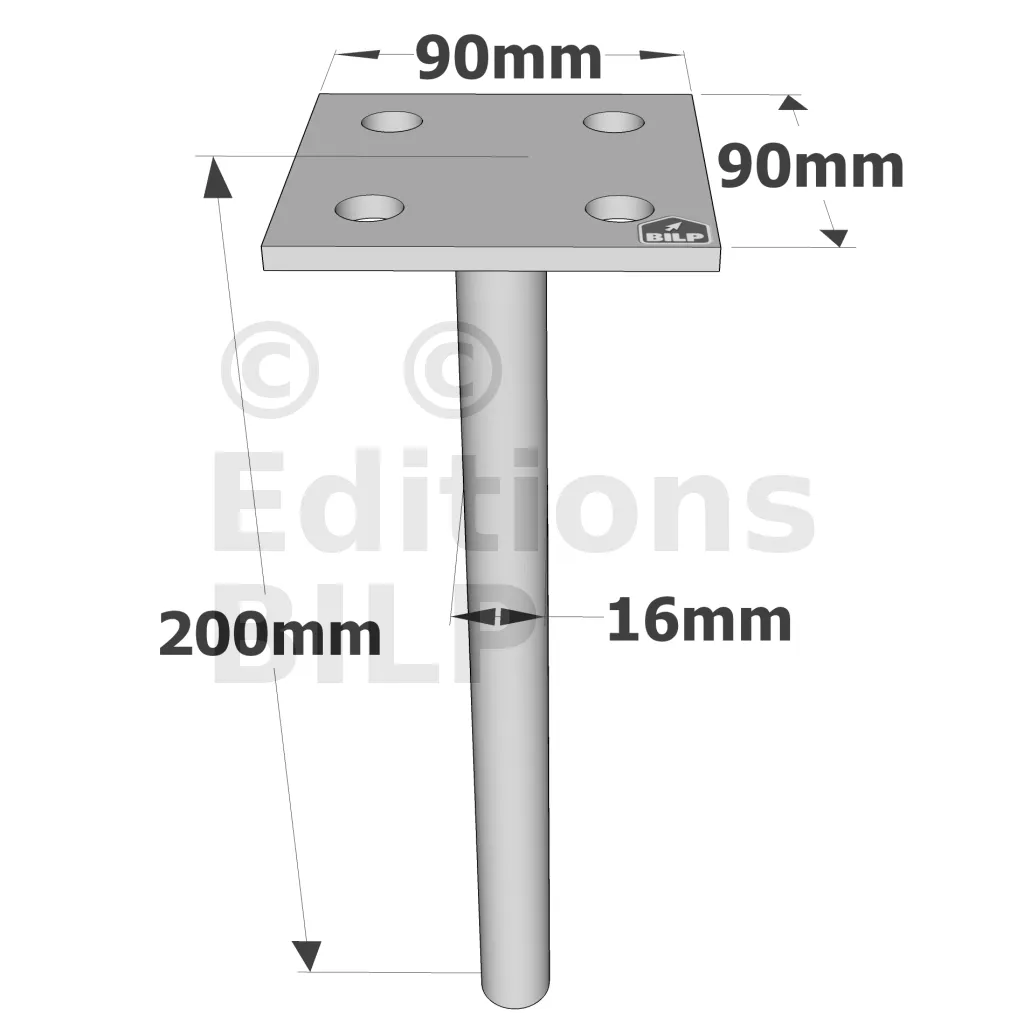 Pieds de poteau à sceller simple platine - Réf. PPSP90