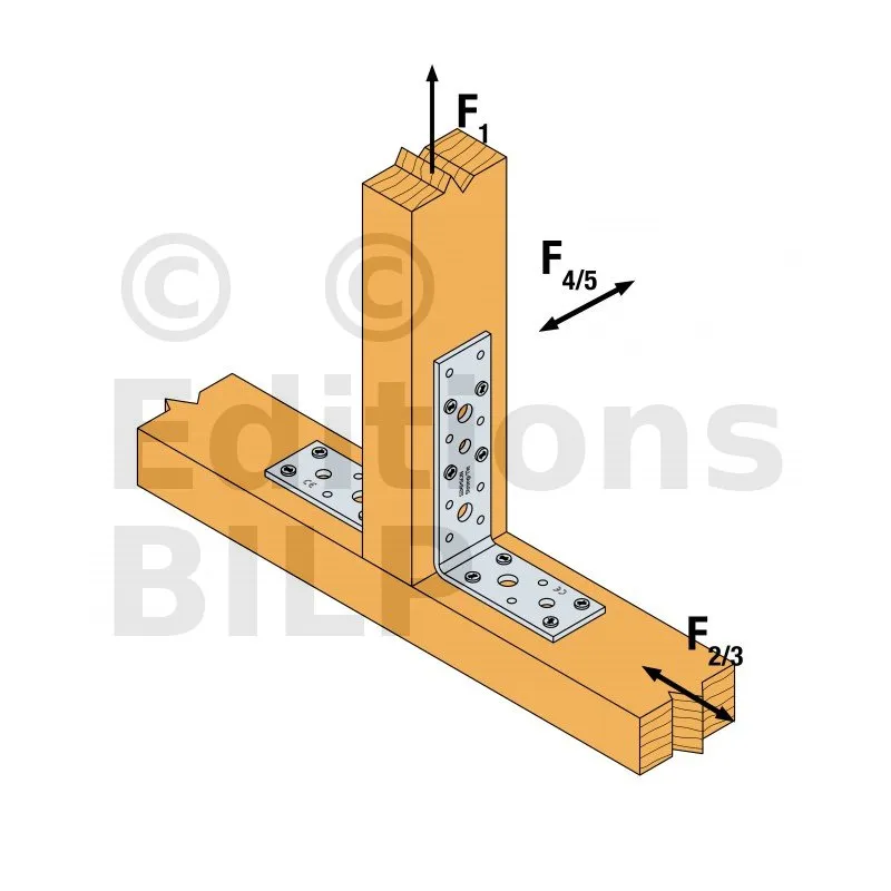 - Fixation bois/bois - type poteau/poutreAile B : 4 ; Aile C : 4 ; type : CNA Ø4.0x35 ou Ø4.0x50 mm - Assemblage avec 2 équerres