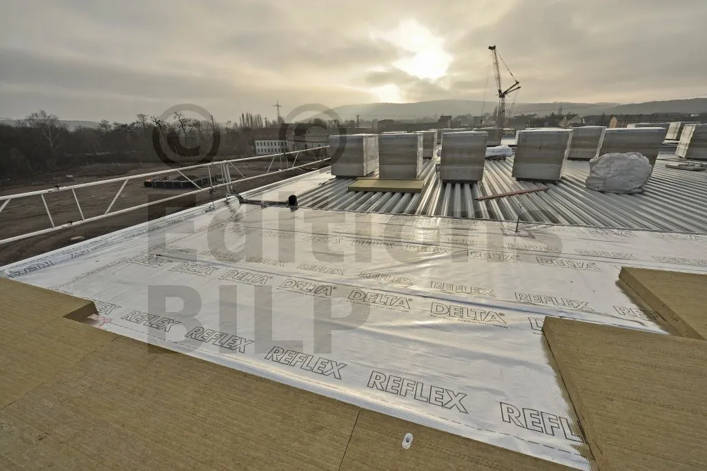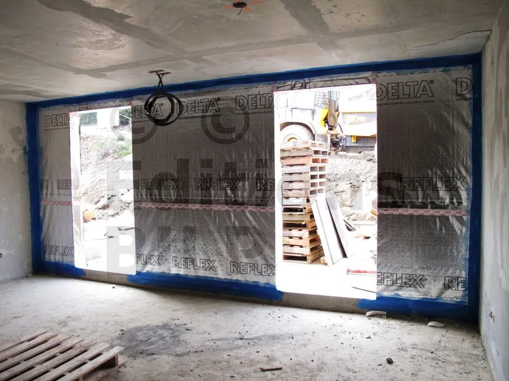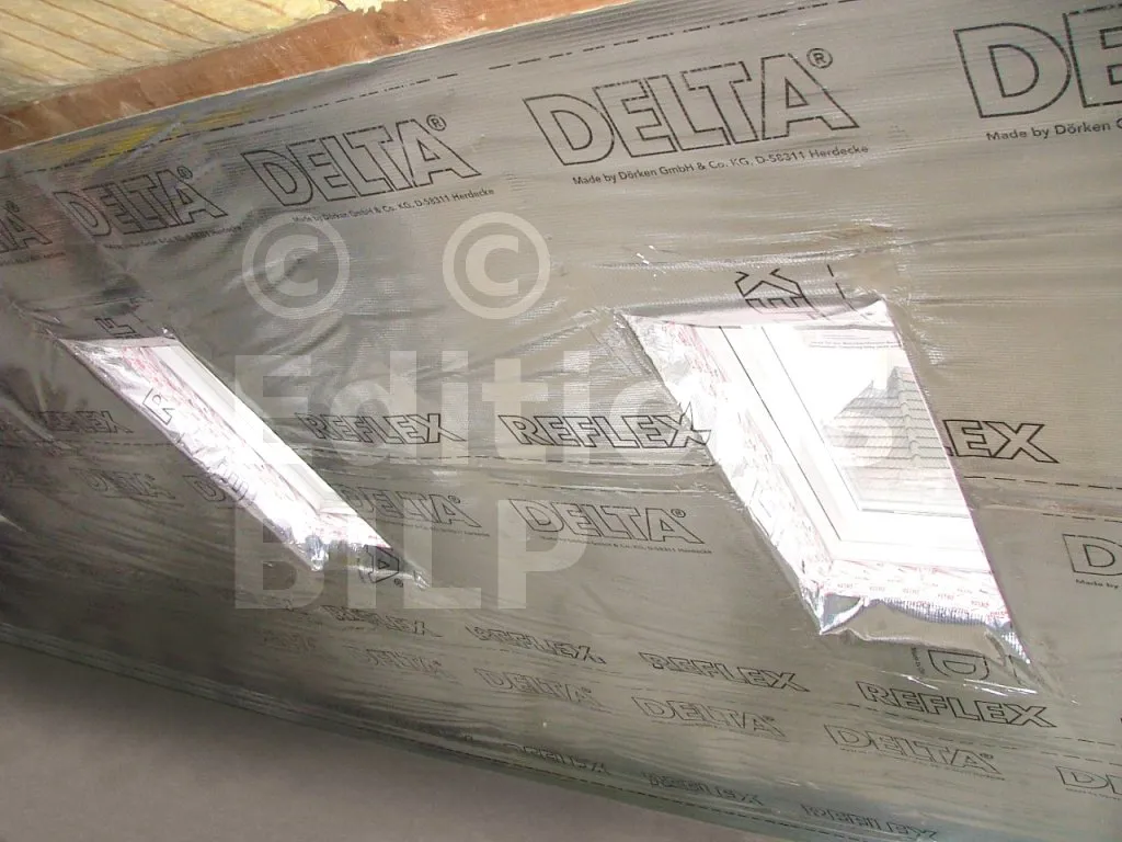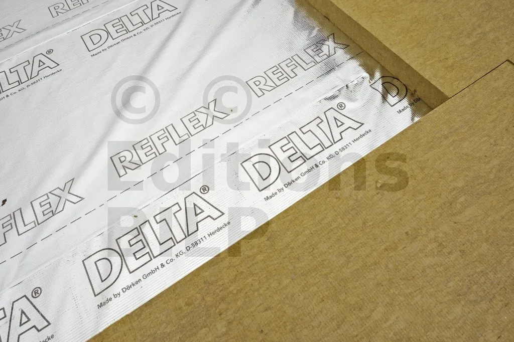 DELTA®-REFLEX est mis en œuvre sur la face chaude de la construction de manière continue en collant les recouvrements entre lés et les différents raccords latéraux ou sorties de conduits de ventilation.