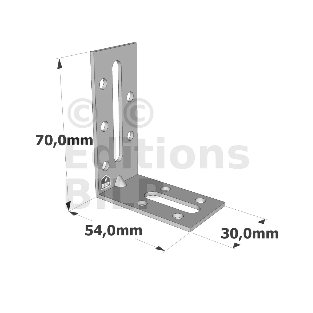 - Trous oblongs facilitant l’ajustement des assemblages,