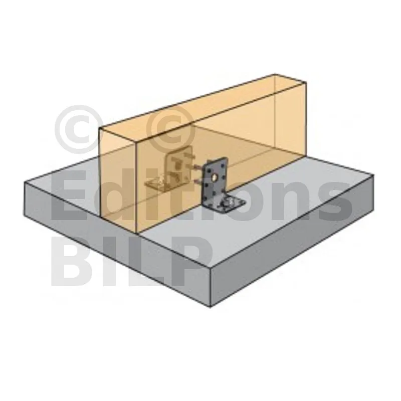 - Fixation bois/support rigide - type poutre/support rigideAile B : 8 - type : CNA Ø4.0x35 ou Ø4.0x50 mm ; Aile C : 1 - type : WA M10-78/5 - Assemblage avec 2 équerres