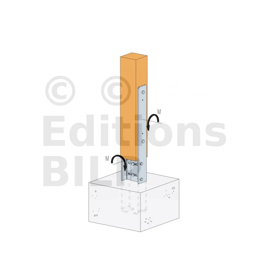 - Le poteau bois est fixé par l’intermédiaire de boulons M16 et de crampons (ex : BULLDOG Type C2 Ø75).