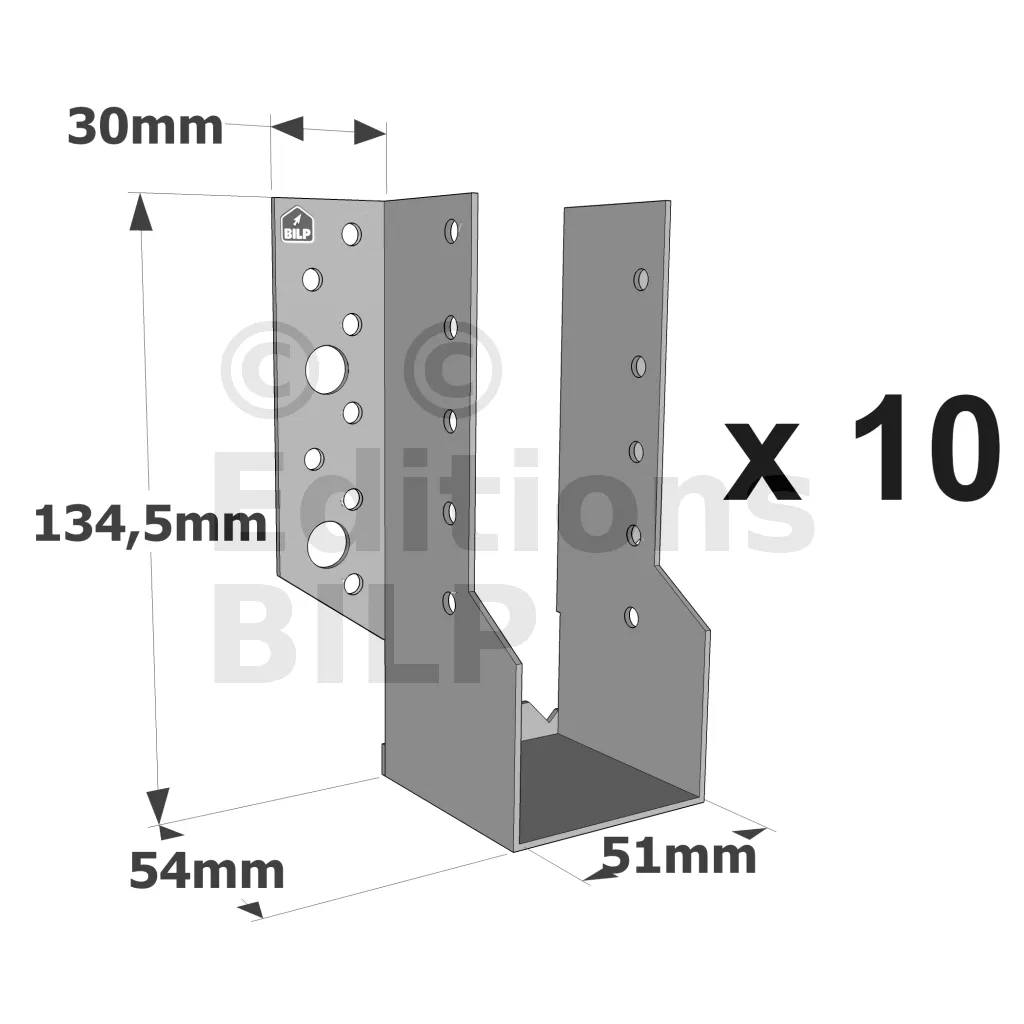 Sabots à ailes extérieures, gamme SBE ECONOMIQUE (épaisseur 1,5mm, profondeur 55mm) - Réf. SBE51/135_10