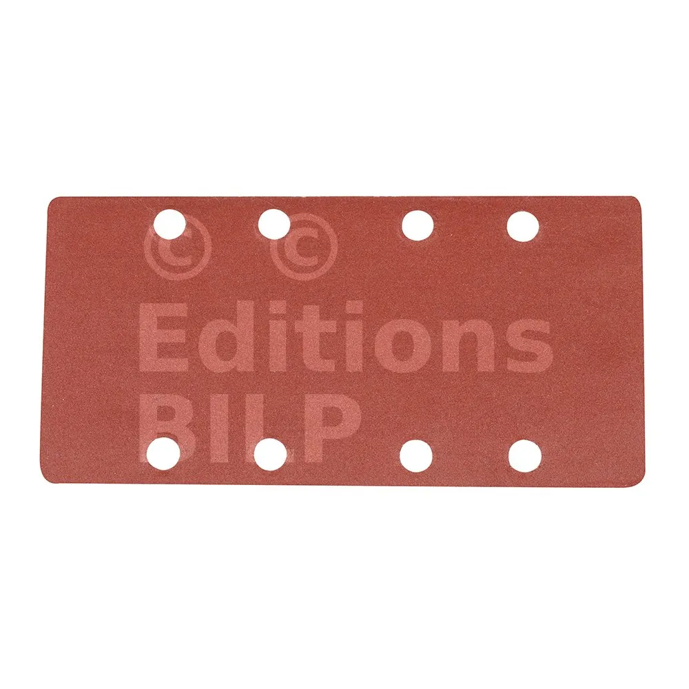 Corindon. Feuilles prédécoupées et perforées adaptées à la plupart des ponceuses 1/3 (93 x 190 mm). Dos auto-agrippant pour fixation rapide.