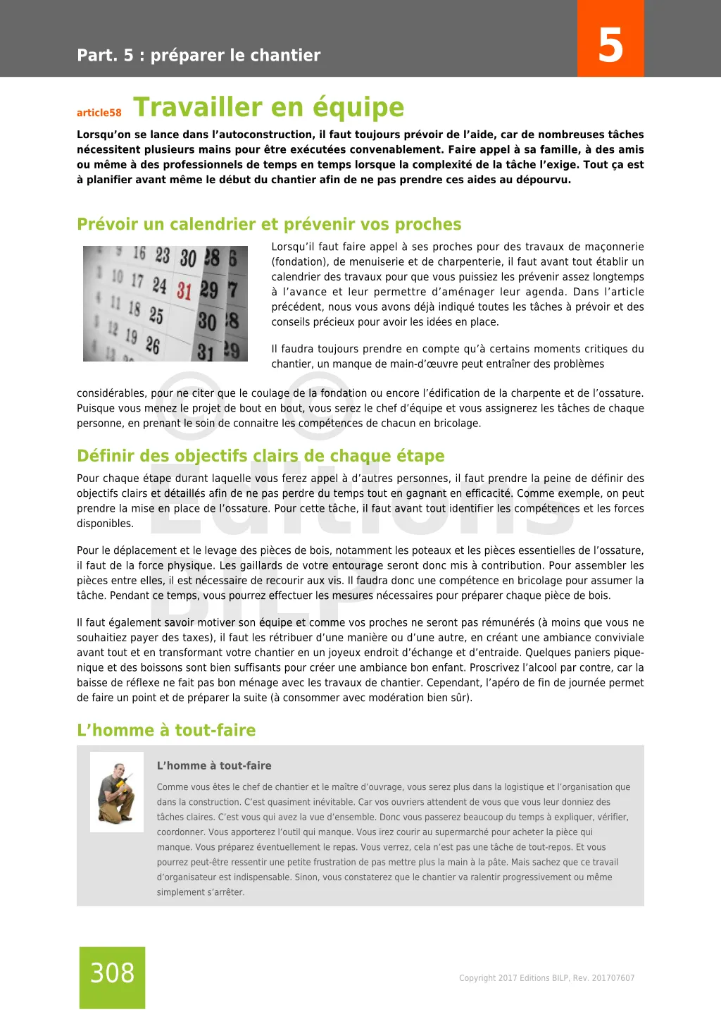Partie 5 : préparer le chantier