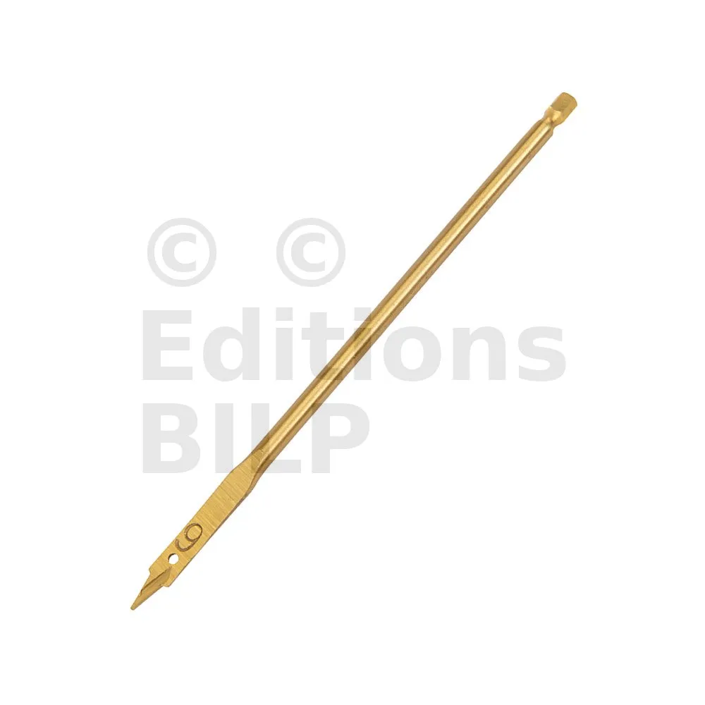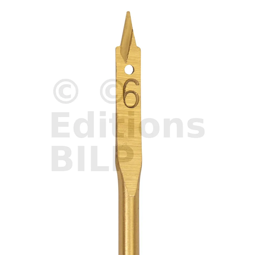 Mèche en acier carbone titanée. Tête de coupe biseautée à trois pointes permettant de réaliser une coupe nette et de réduire les projections. Renforcée en titane pour une durée de vie étendue. Queue 6 pans. Pour le perçage rapide et précis des bois tendres, semi-durs, panneaux de particules, plaques de plâtre, matières plastiques et fibres de verre.