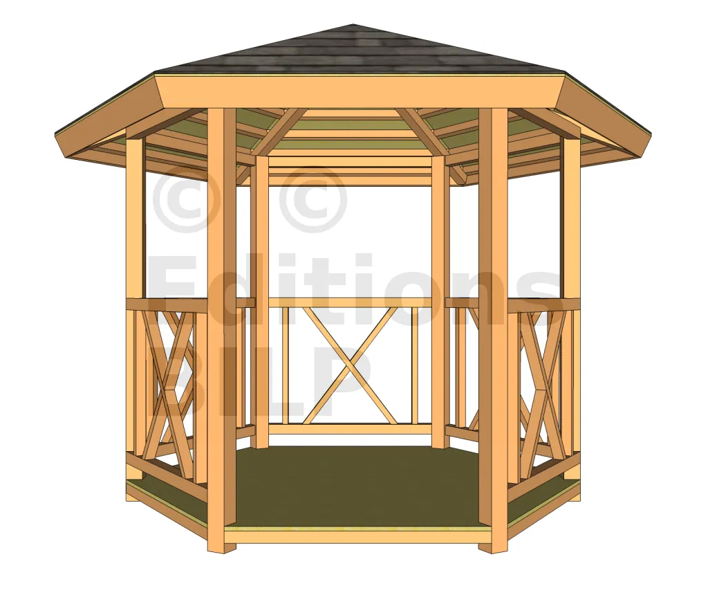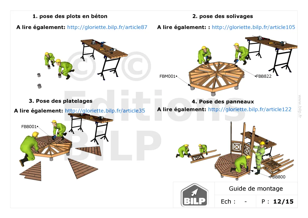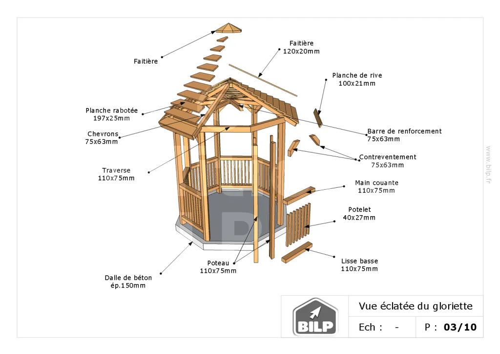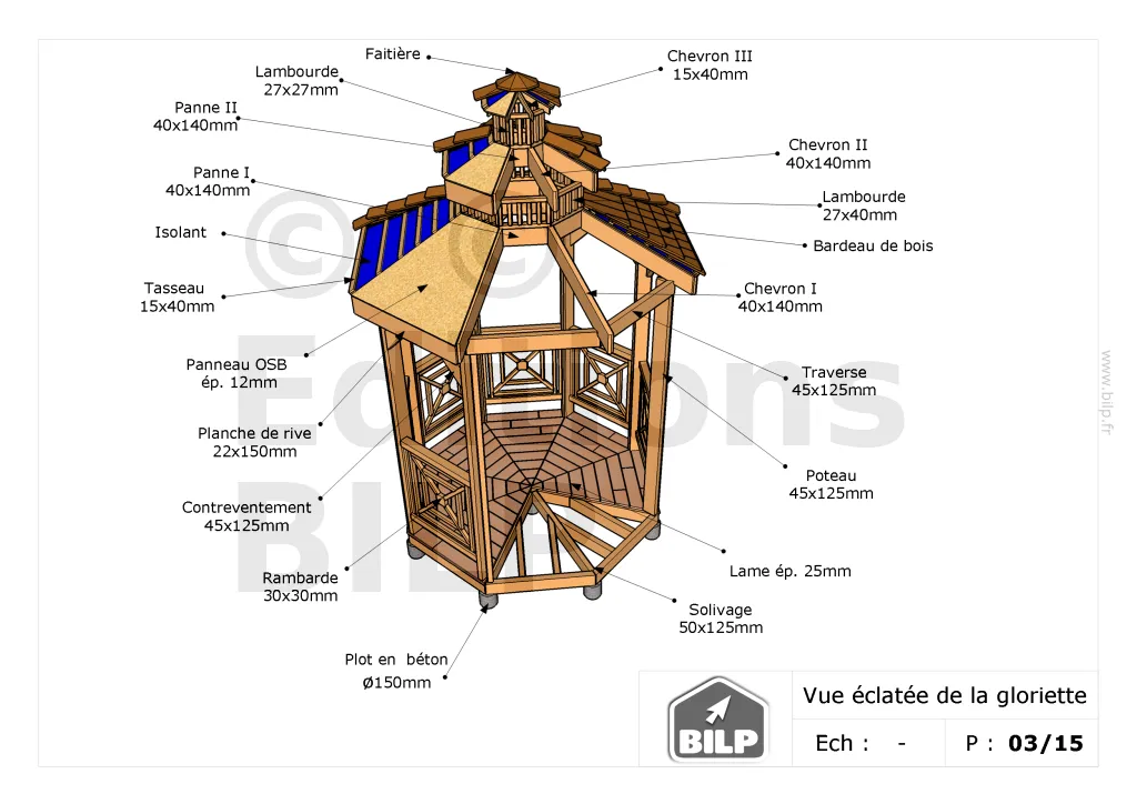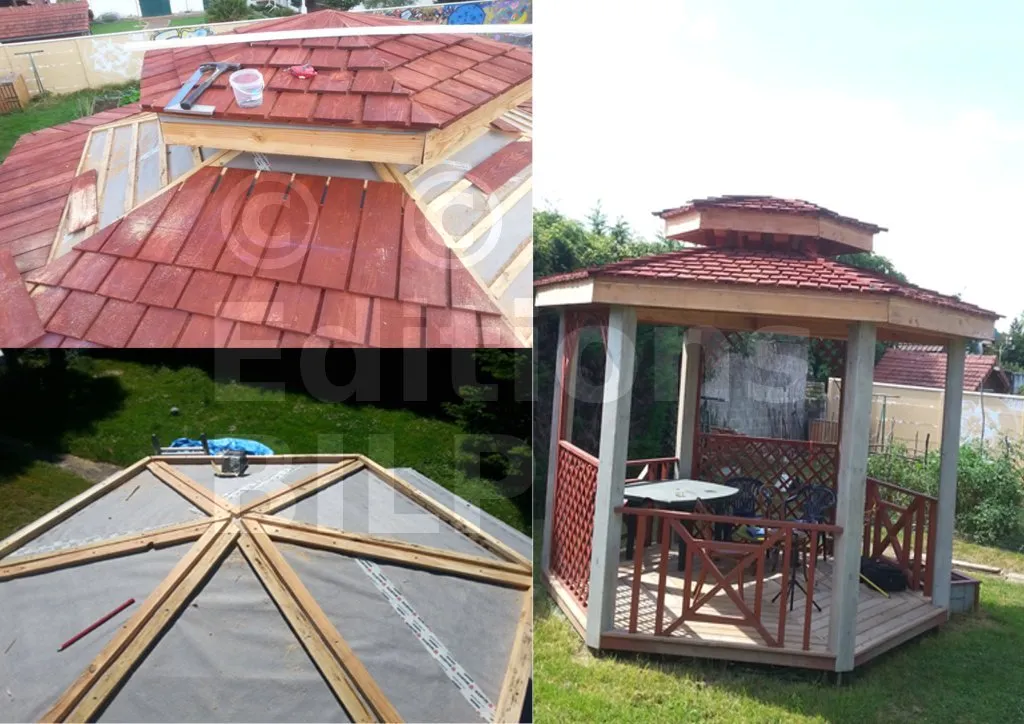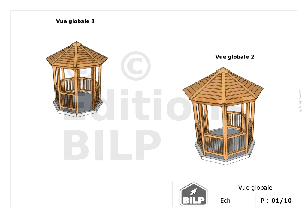 Je peux vous l’envoyer GRATUITEMENT au format PDF. Il s’agit du dossier de conception d’une belle GLORIETTE en ossature-bois. Peut-être que cela vous inspirera pour votre projet.