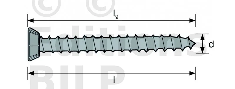 - Son filetage garantit un excellent taraudage et une rapidité de pénétration du matériau support.