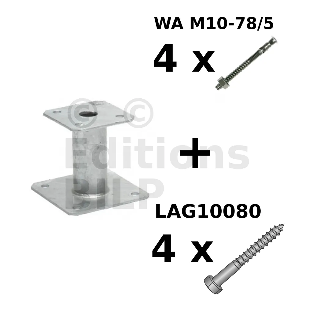 - 1 pied de poteau PPA en acier électrozingué,