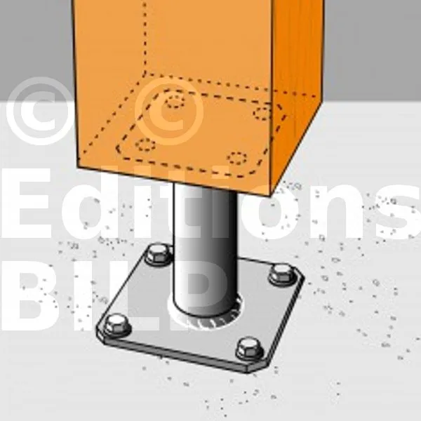 2- Fixer cette platine au poteau à l’aide de tirefonds LAG (pré-perçage nécessaire).