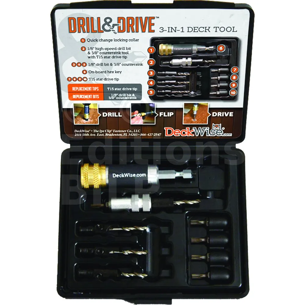 Utiliser pour PRE-PERCER et FRAISER les lames de terrasse. Et enfin pour VISSER sans changer de visseuse (une seule suffit).