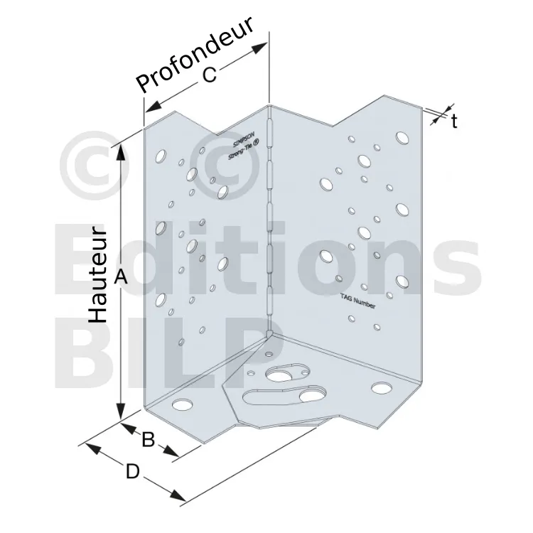 Équerre réglable pour dalle bois - Fixation poutre bois de hauteur 235 à 310mm - Réf. ABF230