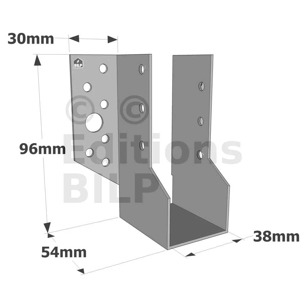 Sabots à ailes extérieures, gamme SBE ECONOMIQUE (épaisseur 1,5mm, profondeur 55mm) - Réf. SBE38/96