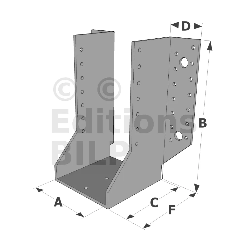 Les sabots GSE en acier galvanisé offrent une flexibilité grâce à des largeurs au choix selon les plages indiquées. Cette caractéristique permet de s’adapter parfaitement aux dimensions spécifiques des éléments de construction, garantissant une compatibilité optimale et une fixation stable.