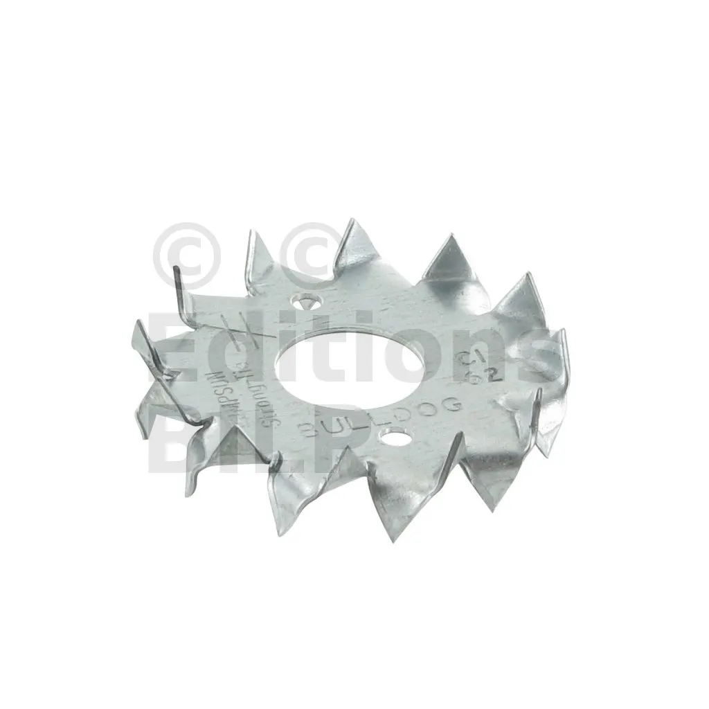 Les crampons Bulldog double denture entrent dans la réalisation d‘assemblages boulonnés. Ils permettent d‘augmenter la capacité de reprise de charge des assemblages.