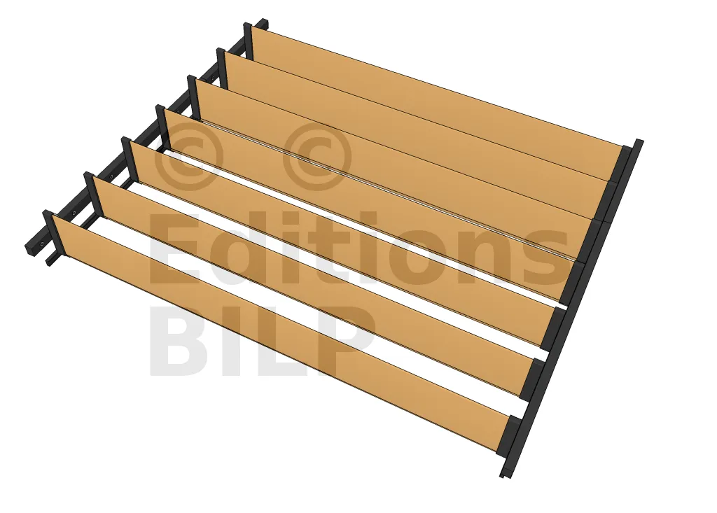 Dieses Modell ist modular aufgebaut. So können Sie es sowohl in der Breiten- als auch in der Tiefenrichtung duplizieren, wobei seine mechanischen Eigenschaften erhalten bleiben. Jede Variante hat eine maximale Tiefe oder Breite, die Sie an Ihre Bedürfnisse anpassen können.