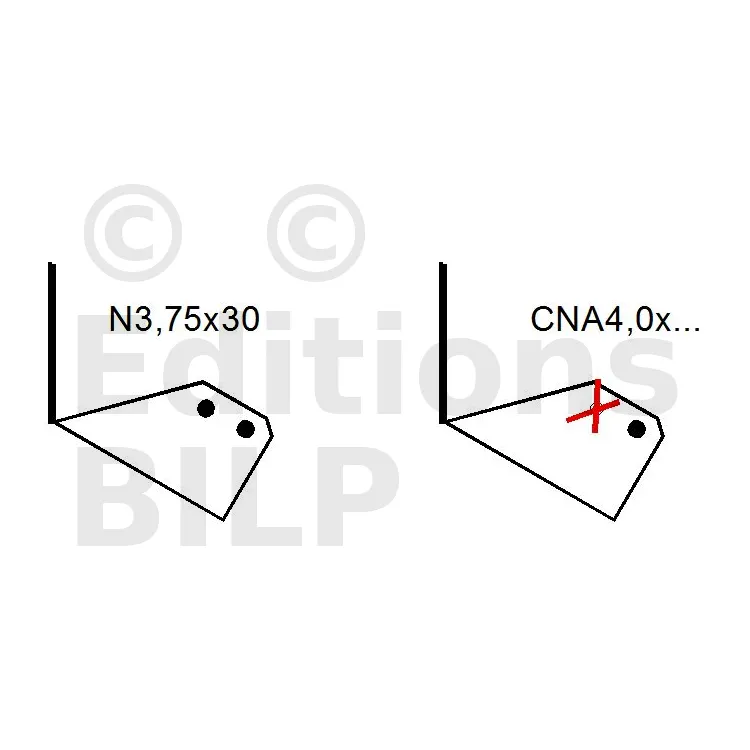 - Pointes annelées CNA Ø 4.0 x 35 ou CNA Ø 4.0 x 50 mm.