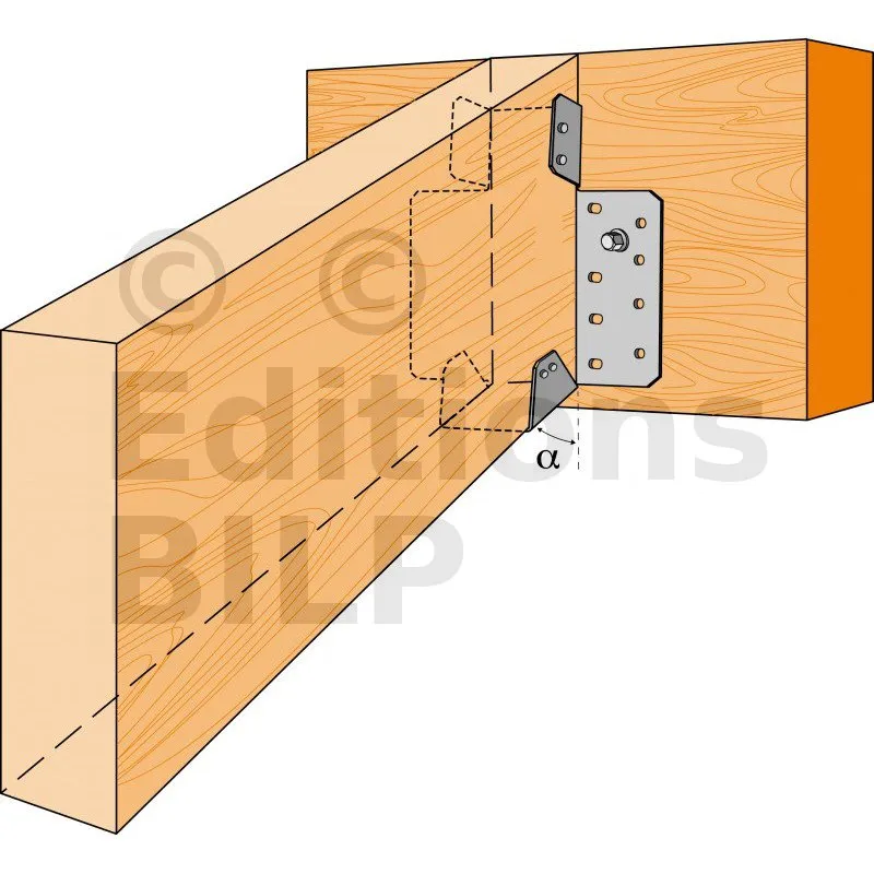 - Pannes : Utilisées pour les pannes, elles assurent une connexion robuste entre les éléments de charpente, même lorsque l’angle d’inclinaison doit être ajusté.