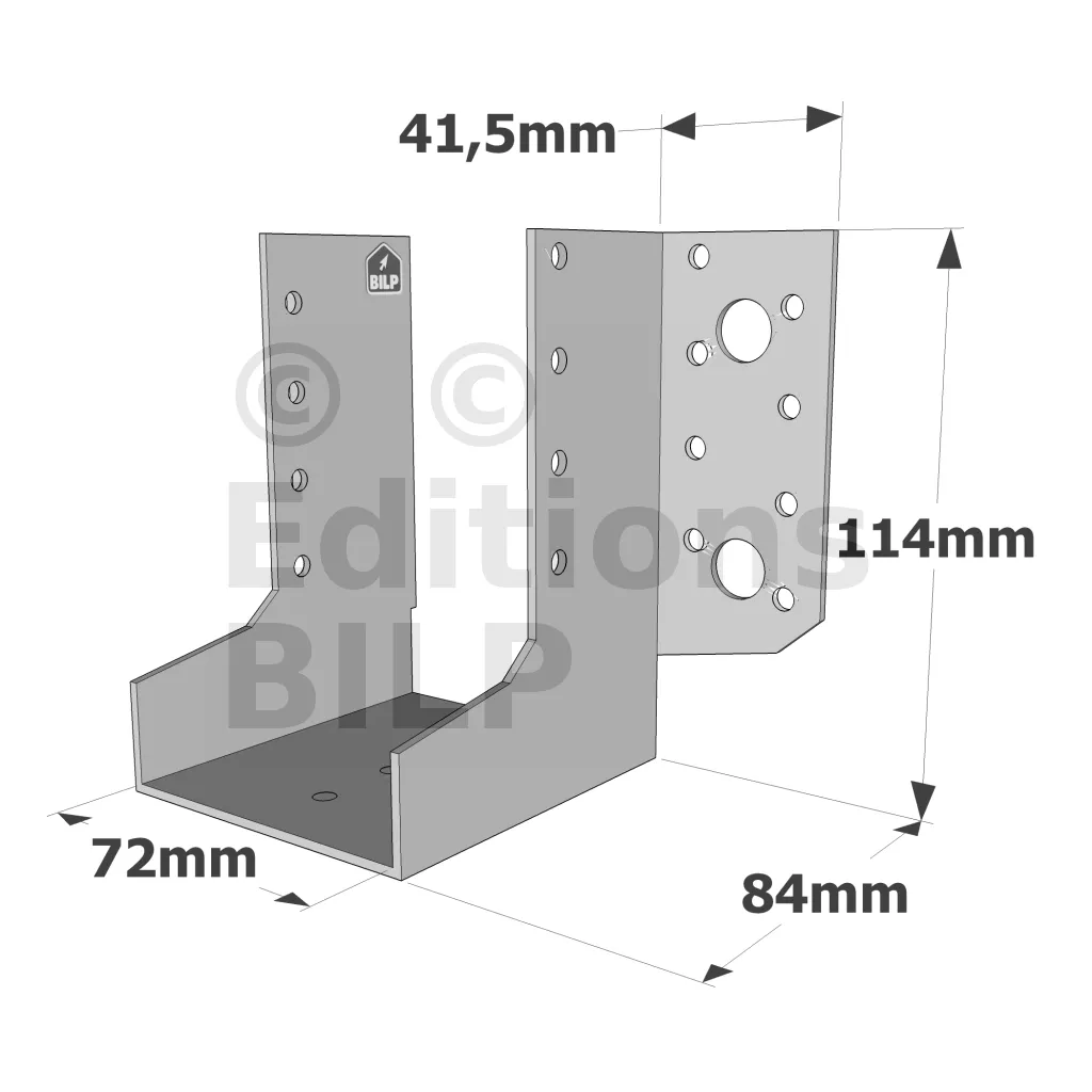- Robustesse et épaisseur : Fabriqués en acier galvanisé, ces sabots à ailes extérieures classiques sont extrêmement résistants à la corrosion et offrent une épaisseur adaptée pour supporter des charges lourdes.