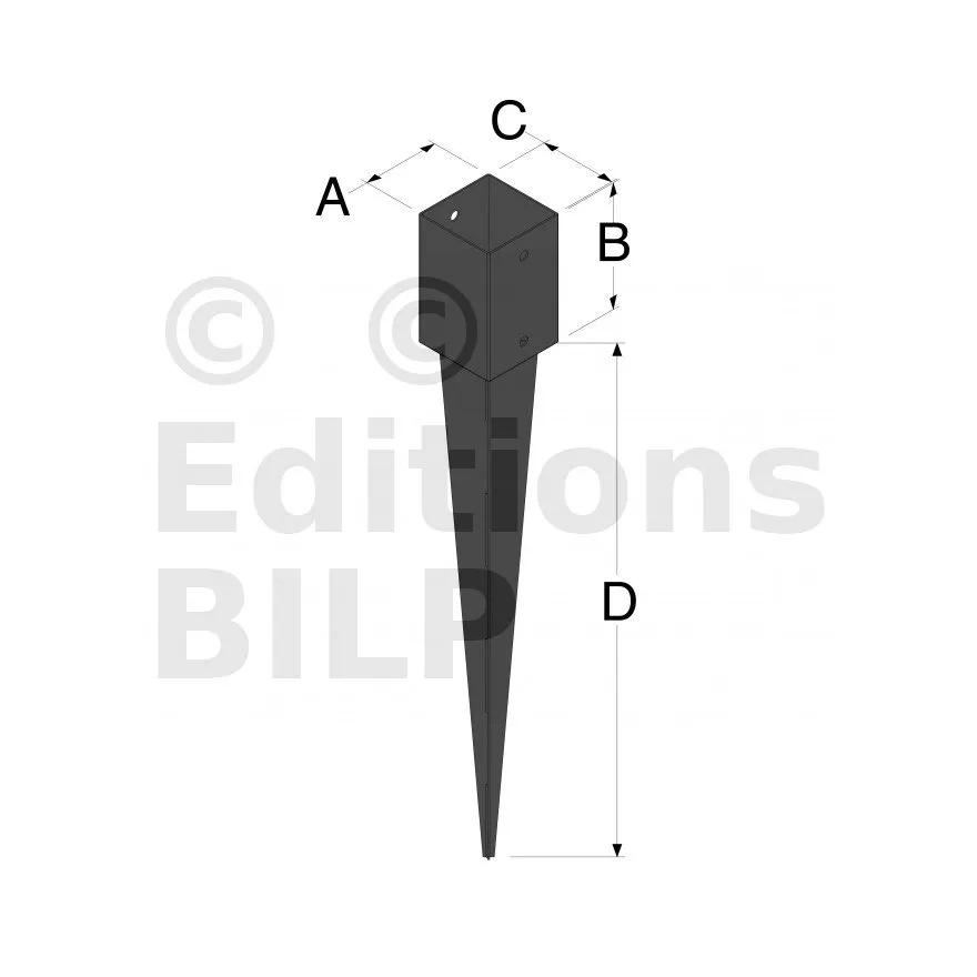 Pied de poteau carré à enfoncer - Finition NOIRE - Réf. PPJNET90/620