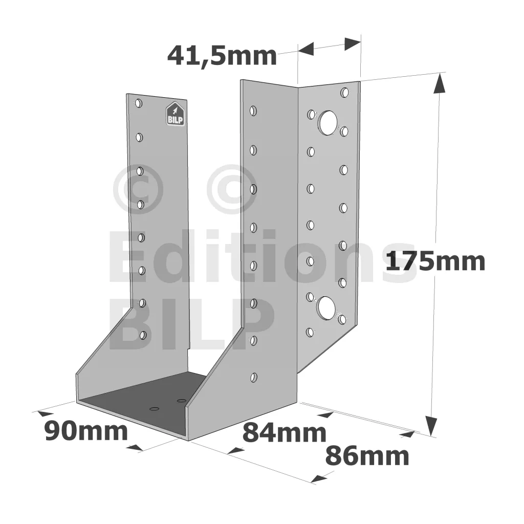 - Robustesse et épaisseur : Fabriqués en acier galvanisé, ces sabots à ailes extérieures classiques sont extrêmement résistants à la corrosion et offrent une épaisseur adaptée pour supporter des charges lourdes.